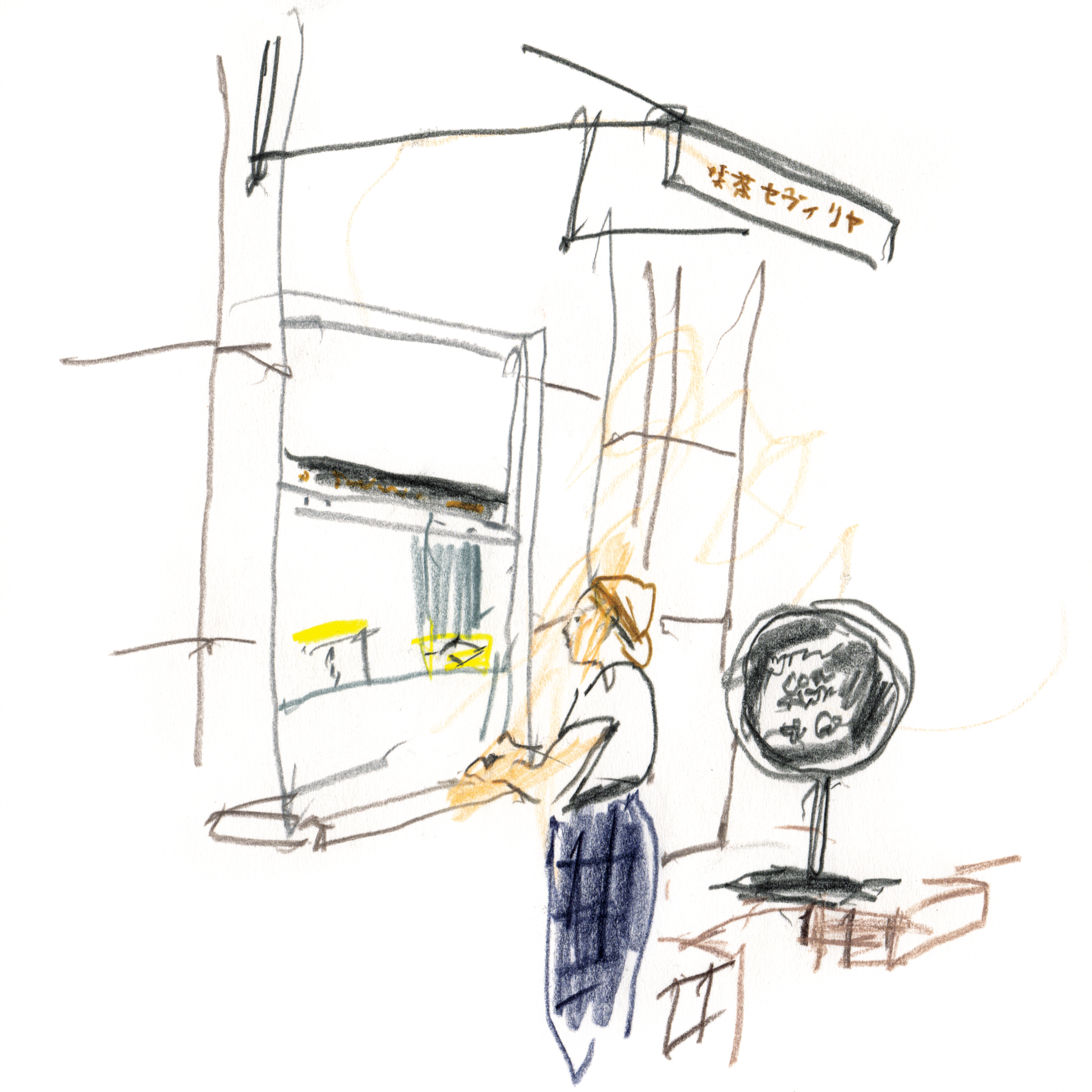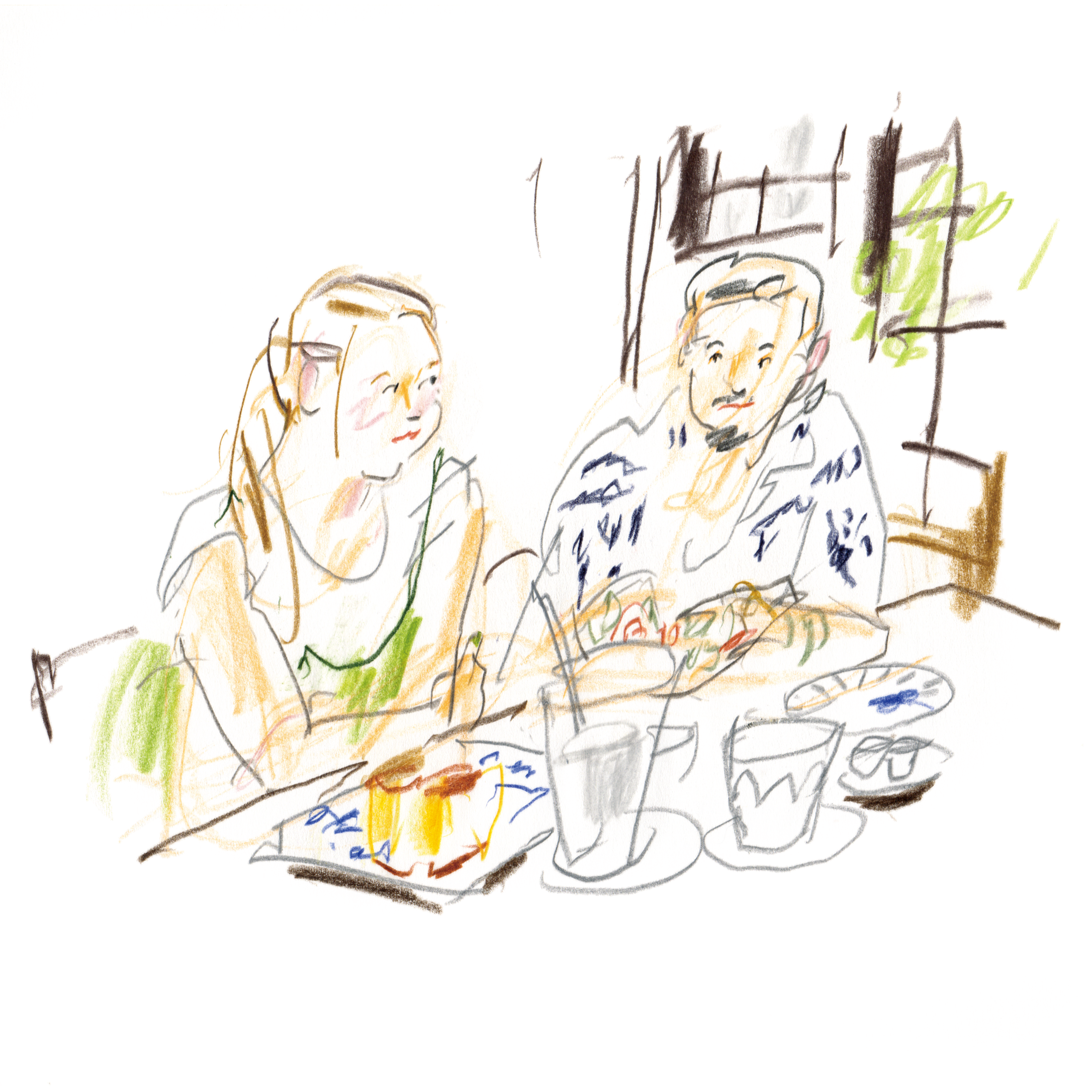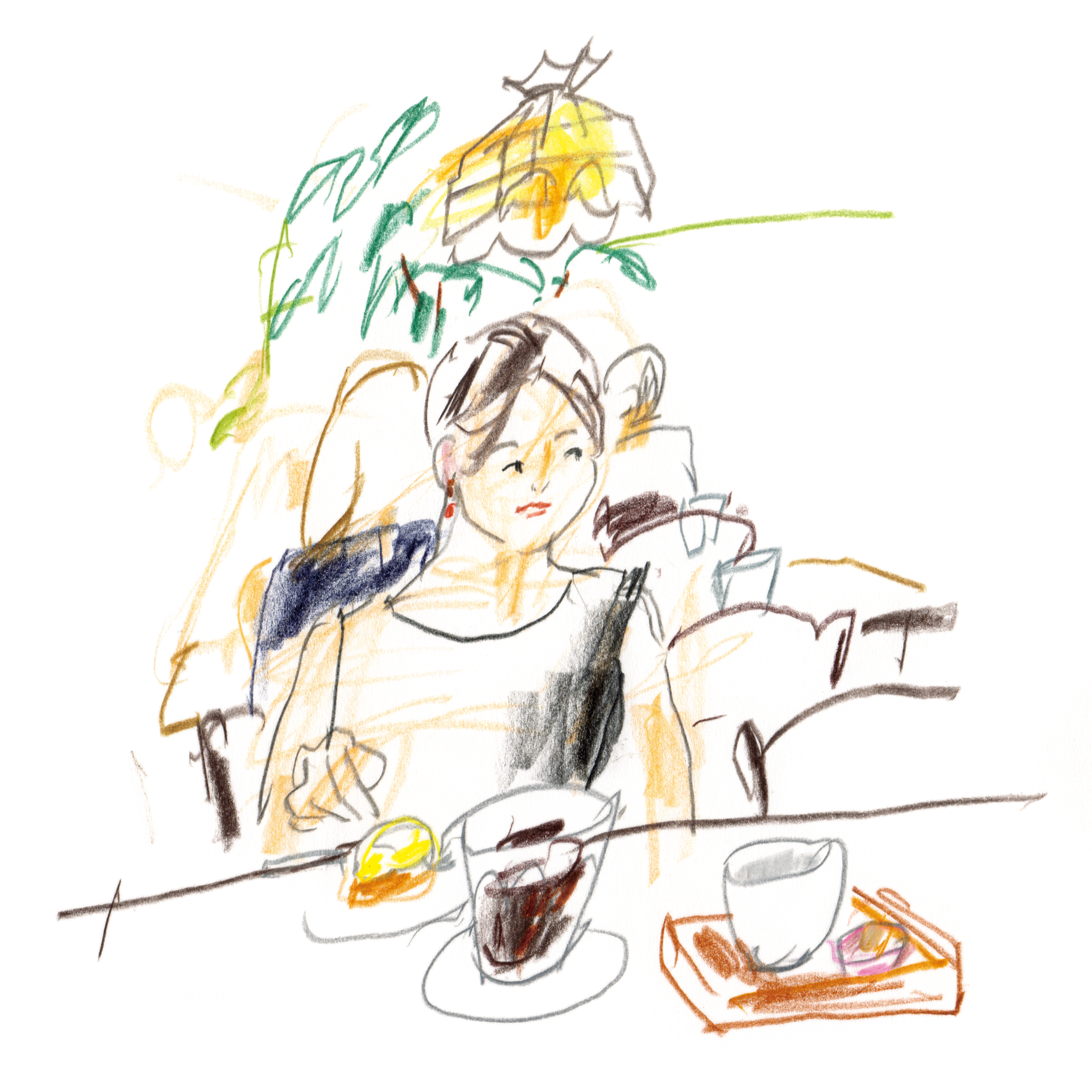 ゆったりと時間が流れる「喫茶セヴィリヤ」にて、イラストレーターの泗水さんがご希望の方をスケッチします。
