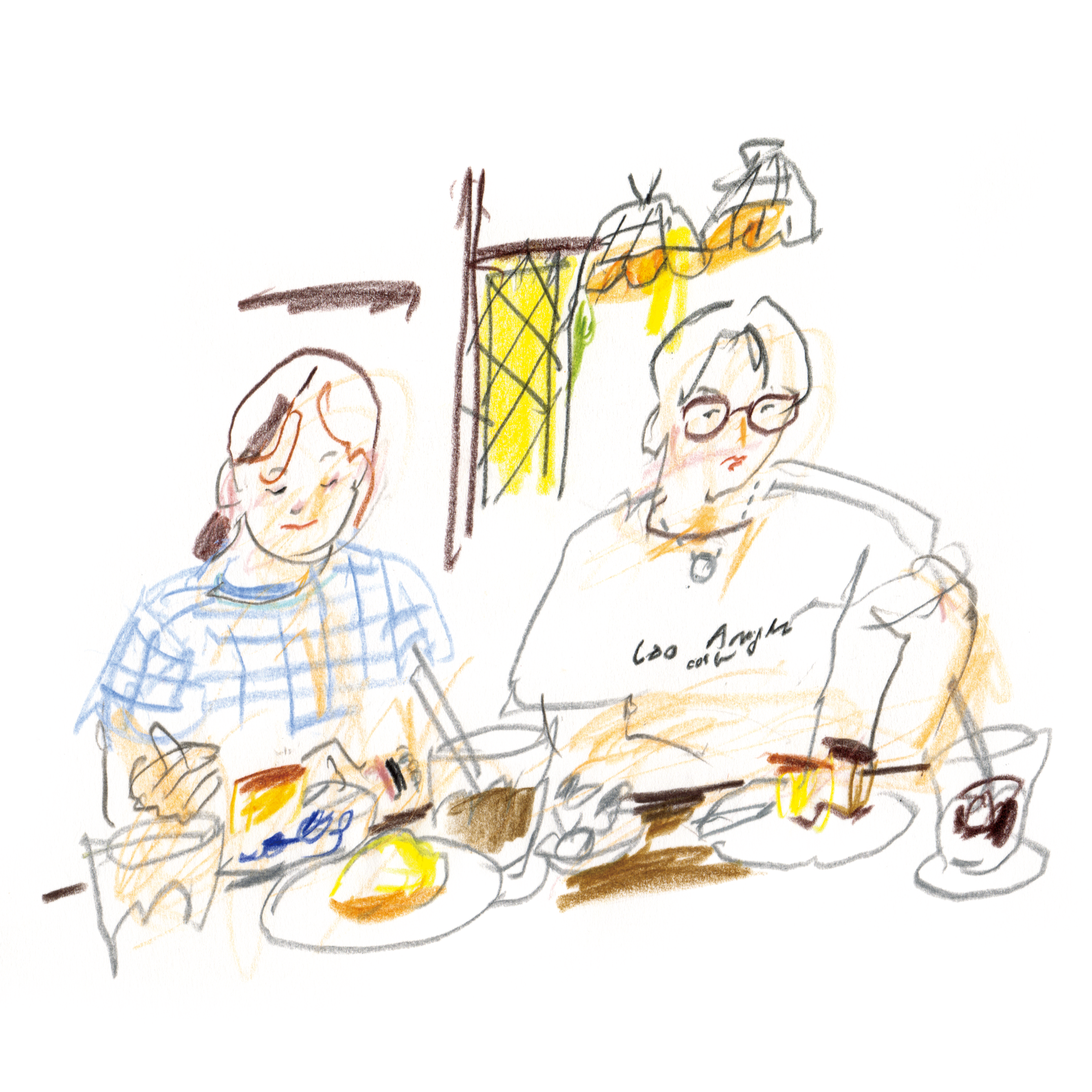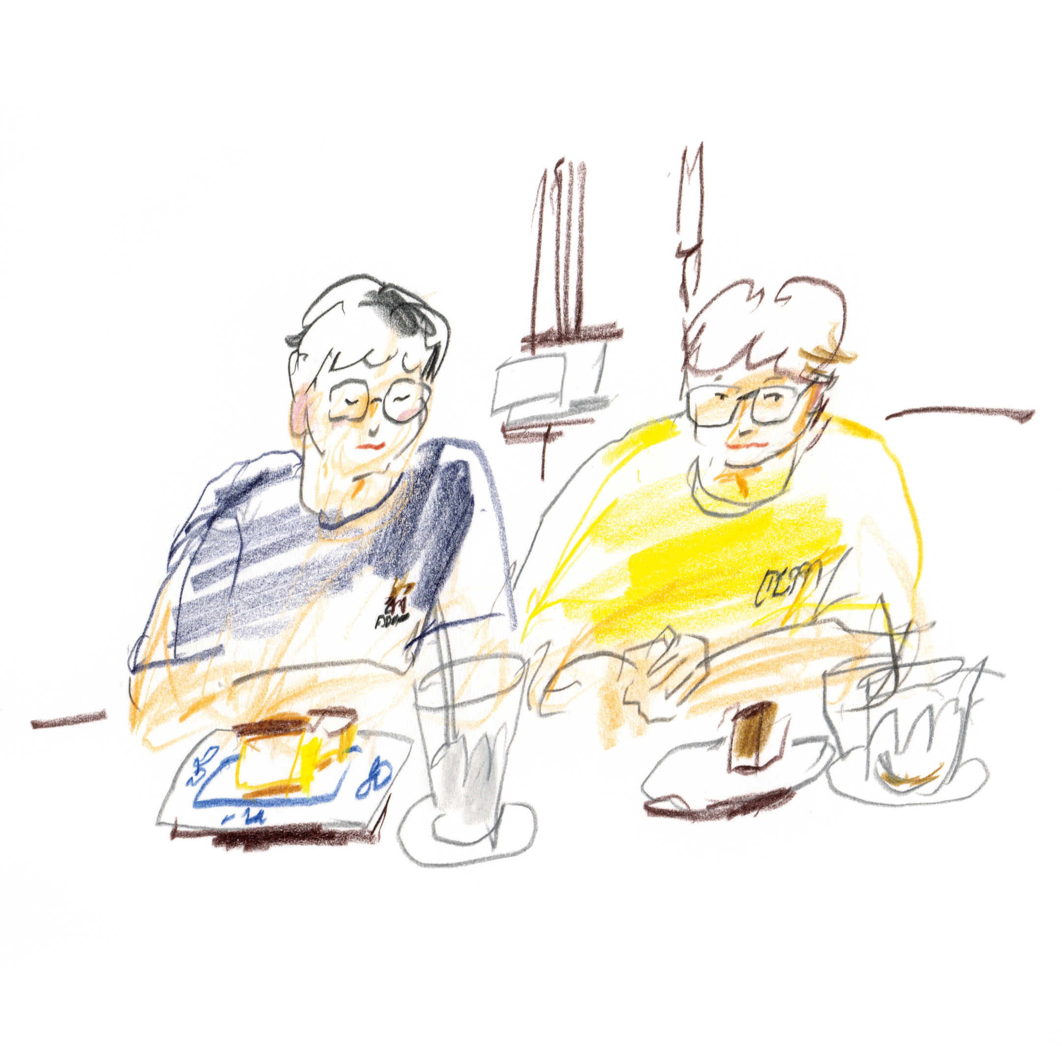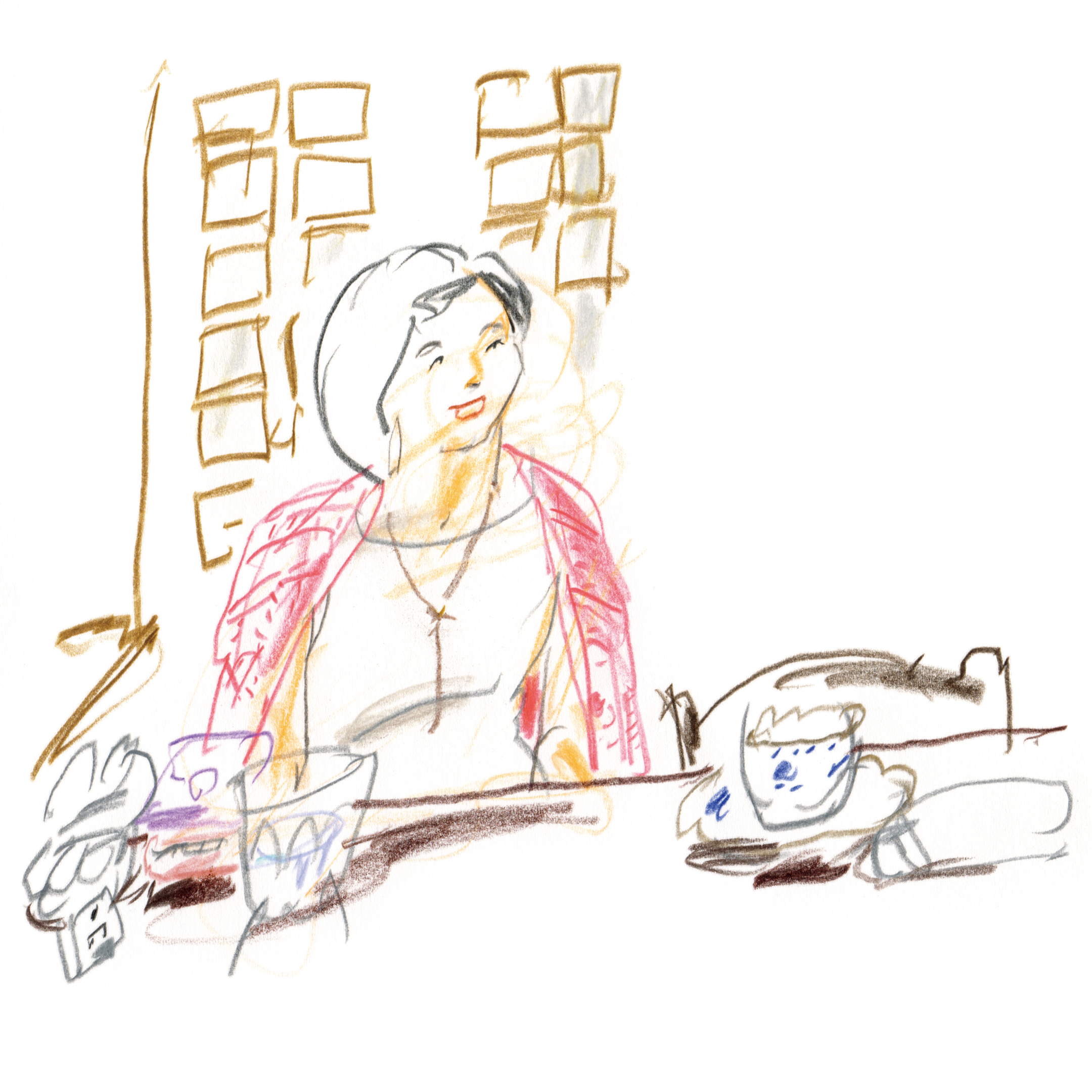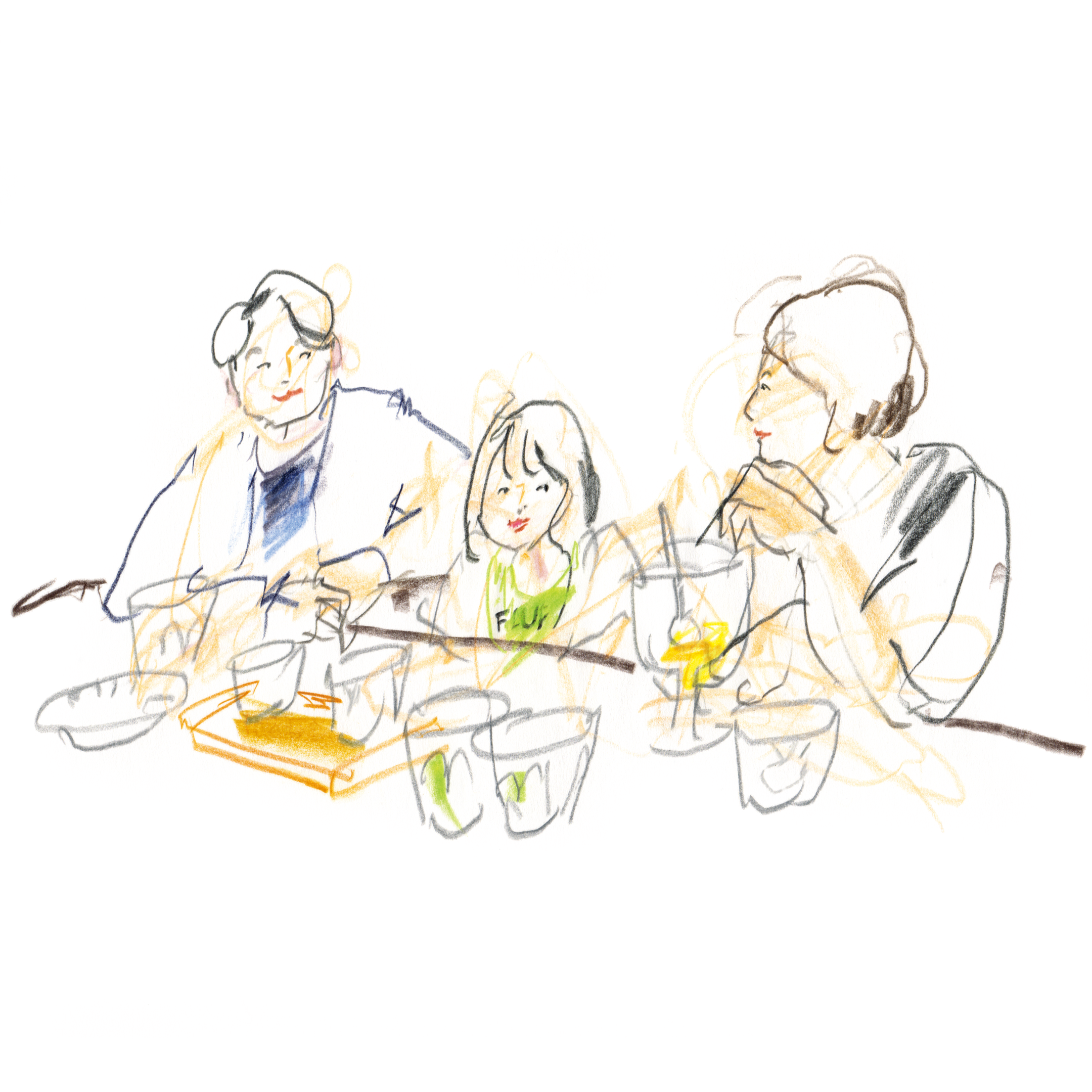 ゆったりと時間が流れる「喫茶セヴィリヤ」にて、イラストレーターの泗水さんがご希望の方をスケッチします。