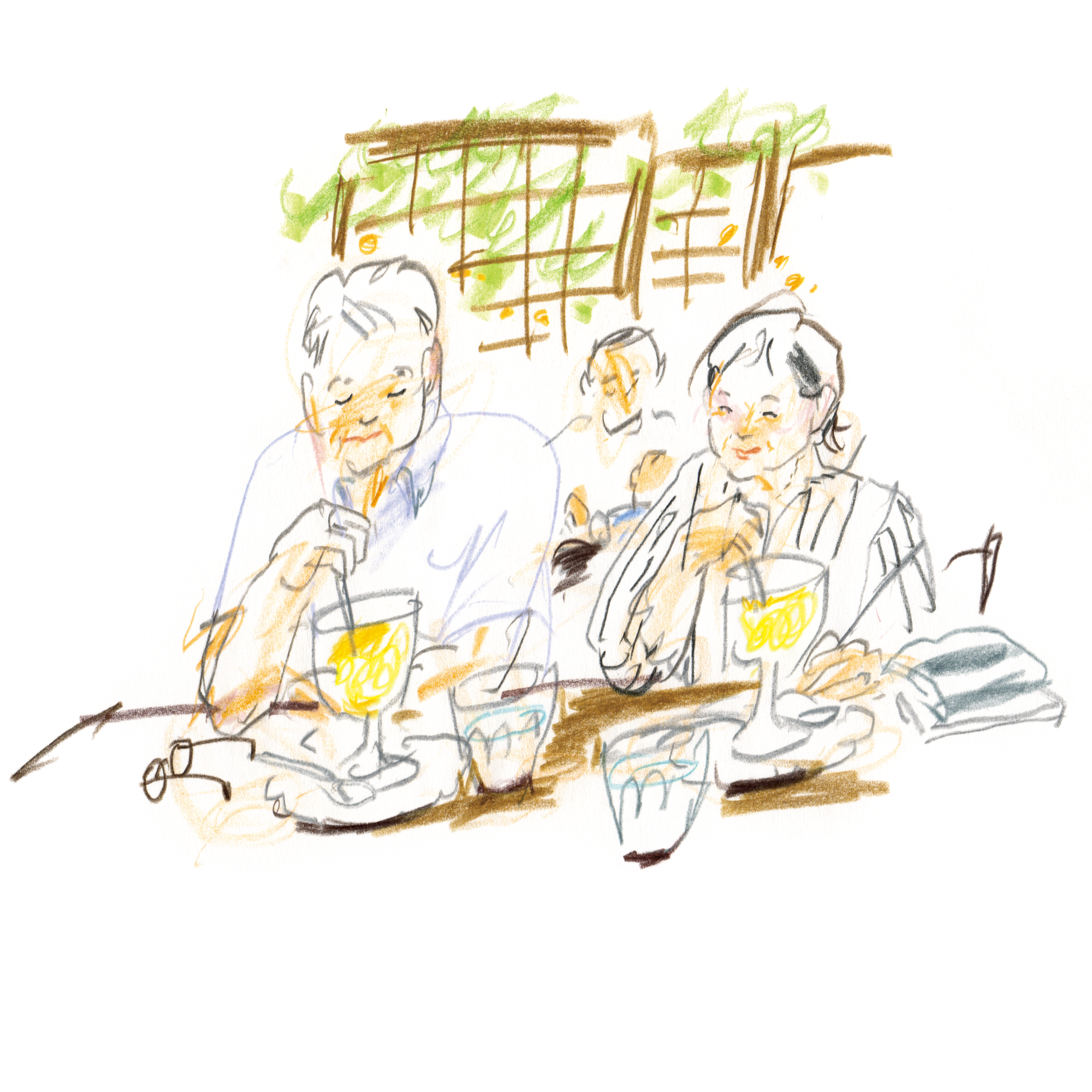 いよいよセヴィリヤ・スケッチも10回目を迎えました。今回は少し趣向を変えて、予告をせずに8月27日(水)に開催。お店にお越しのお客様に声を掛けて、スケッチをいたしました。