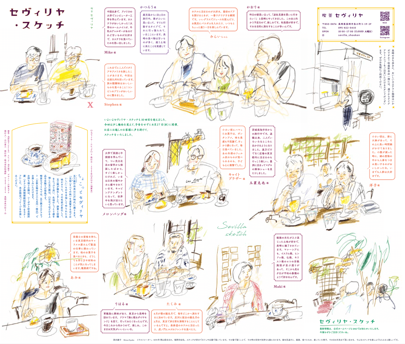 ゆったりと時間が流れる「喫茶セヴィリヤ」にて、イラストレーターの泗水さんがご希望の方をスケッチします。